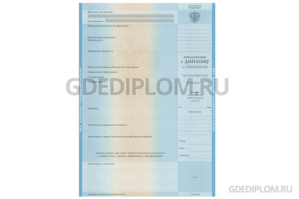- Заполнение диплома как в ВУЗе