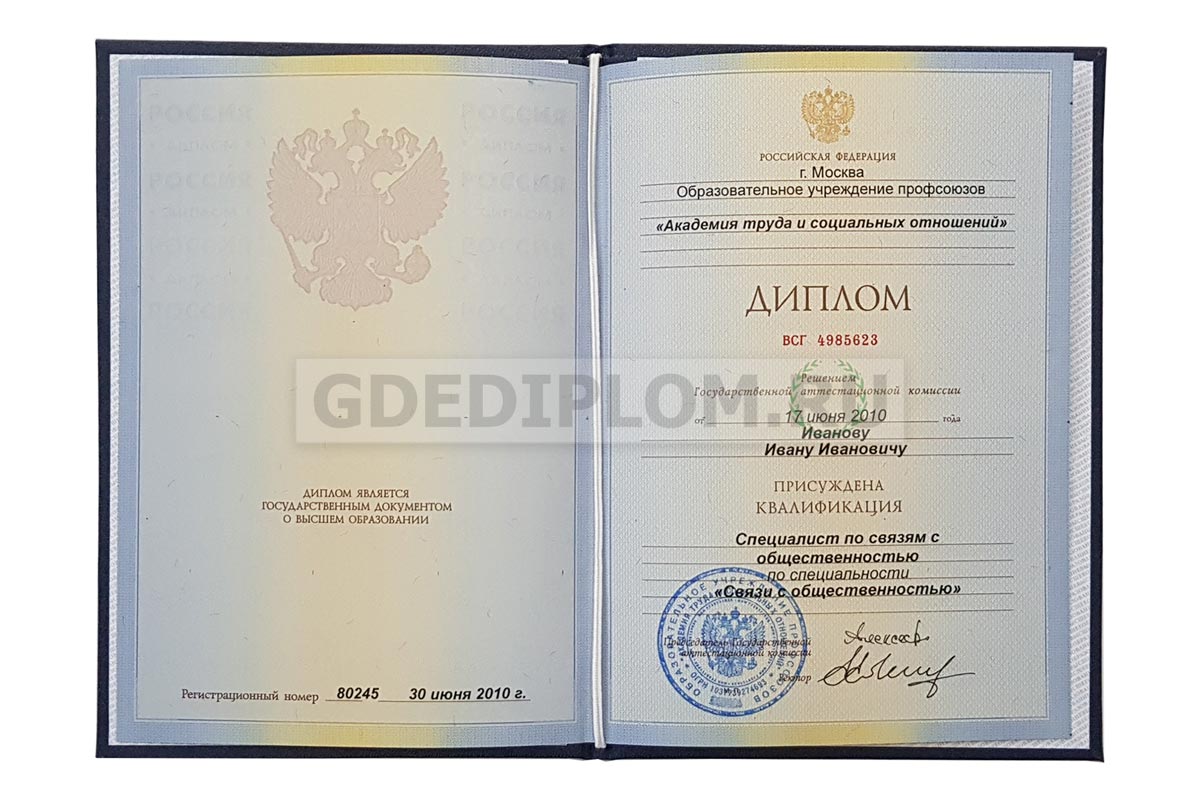 Вы можете приобрести документы, по любым специальностям. Вы получите такой же документ, какой выдают выпускникам в учебных заведениях. И для приобретения такого документа вам не нужно наличие образования. Вы можете заказать у нас дипломы и бакалавра, и магистра, и аспиранта, и средних специальных учебных заведений на государственных бланках. И стать счастливым обладателем диплома.