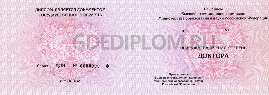 Получить докторскую степень (ученая степень высшей ступени) можно по итогам защиты докторской диссертации. У нас же Вы можете купить диплом доктора наук без какой-либо подготовки. Изготавливается на оригинальном бланке гособразца (Гознак), заполняется по стандартам Минобрнауки.