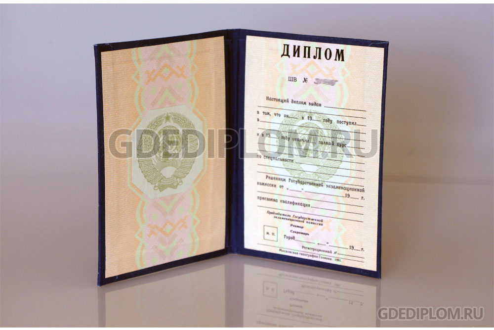 На нашем сайте Вы можете купить диплом старого образца времен СССР, такой же, как выдавали в вузах и техникумах нашей страны до 1996 года. Ниже представлены фотографии и цены дипломов. В комплект готового документа входит: заполненный и заверенный по всем правилам бланк диплома с обложкой синего цвета, а также, заполненное и заверенное печатью и подписями, приложение к диплому.
